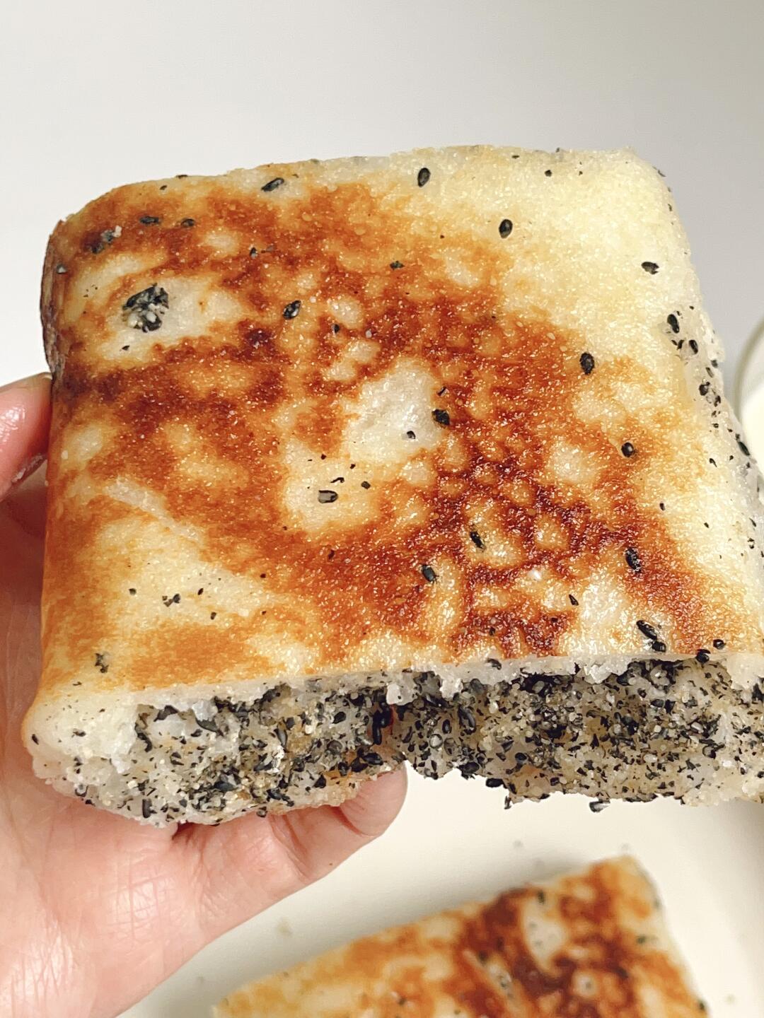 外皮煎的酥酥脆脆的,里面是糯叽叽的大米糕,还裹着黑芝麻和红糖馅,真的超绝!
